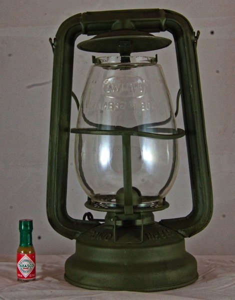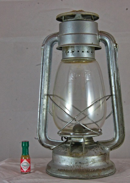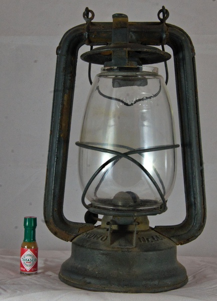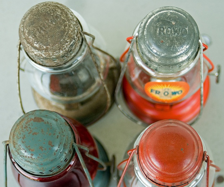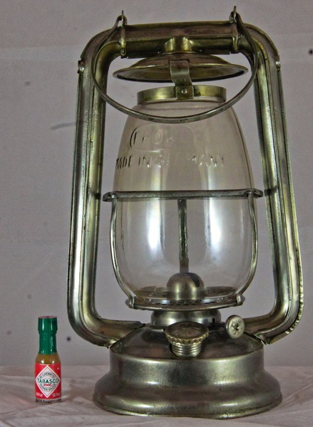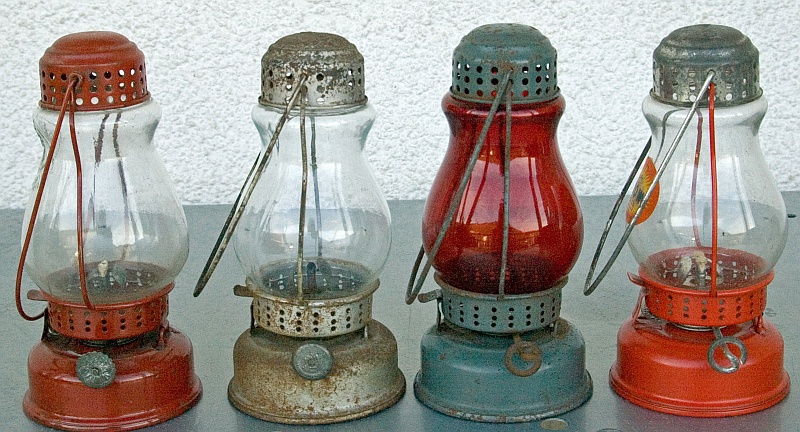 Dieses Laternenset besteht aus einer Petroleumlaterne, einer Kerzenlaterne und einer elektrischen Birne (zum Anschluss an eine Motorradbatterie). Gebaut wurden sie wahrscheinlich den 1950er und