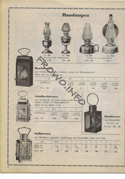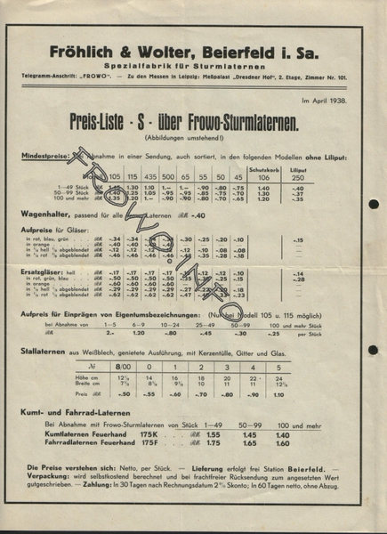Preisliste - S - über FROWO-Sturmlaternen - April 1938