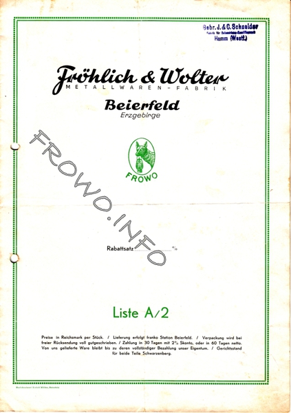 Im Vergleich zu den Mitbewerbern wurden von der Firma FROWO relativ wenig Kataloge oder Werbeprospekte herausgegeben. Leider sind sie auch nur zum Teil datiert.