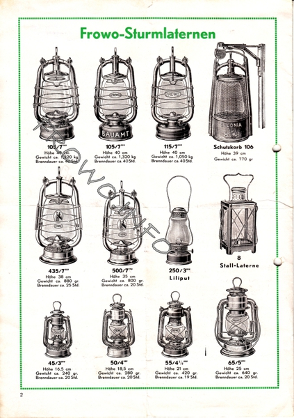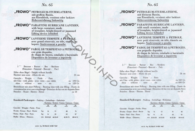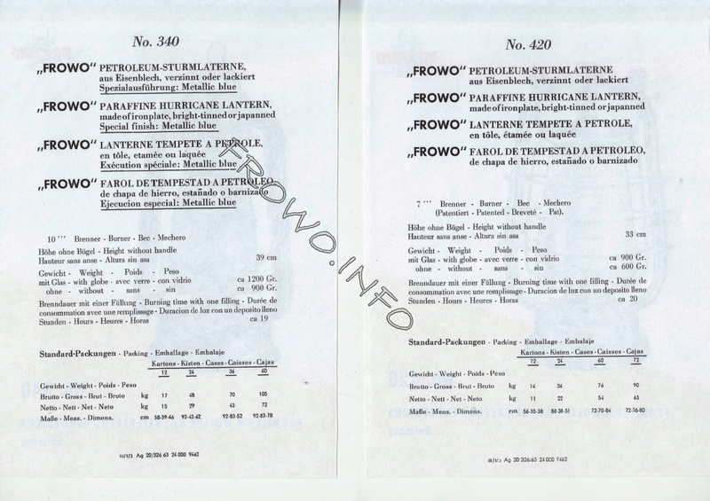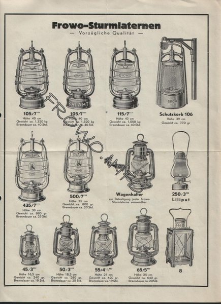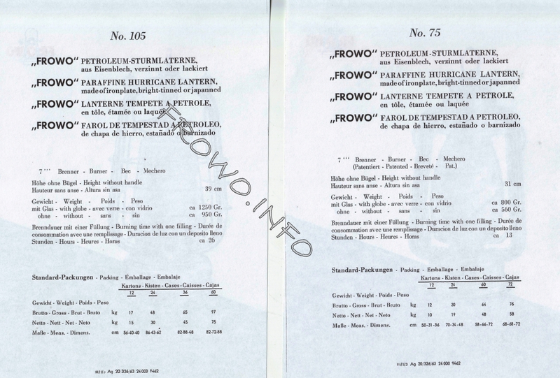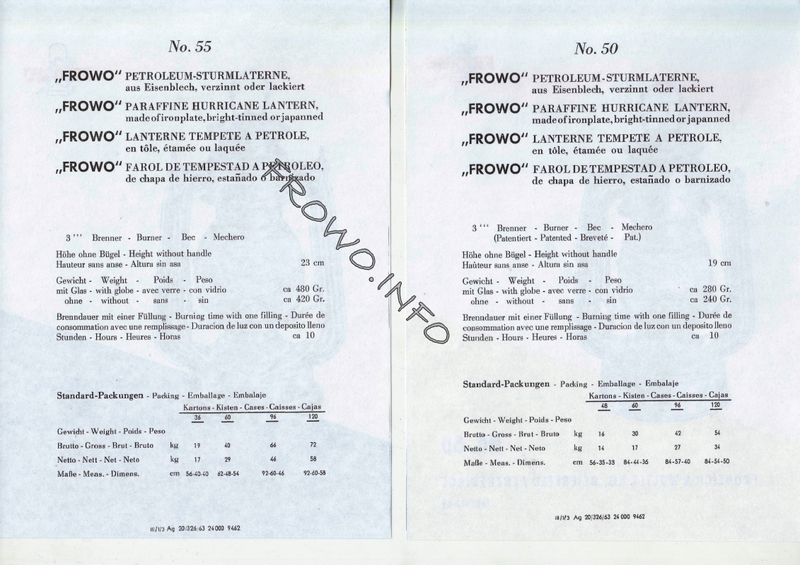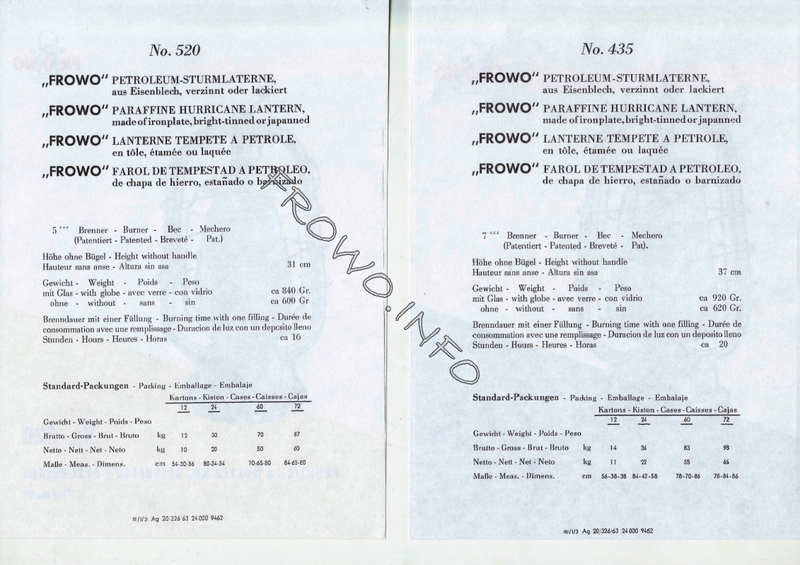 Prospektmappe FROWO-Sturmlaternen - 1963